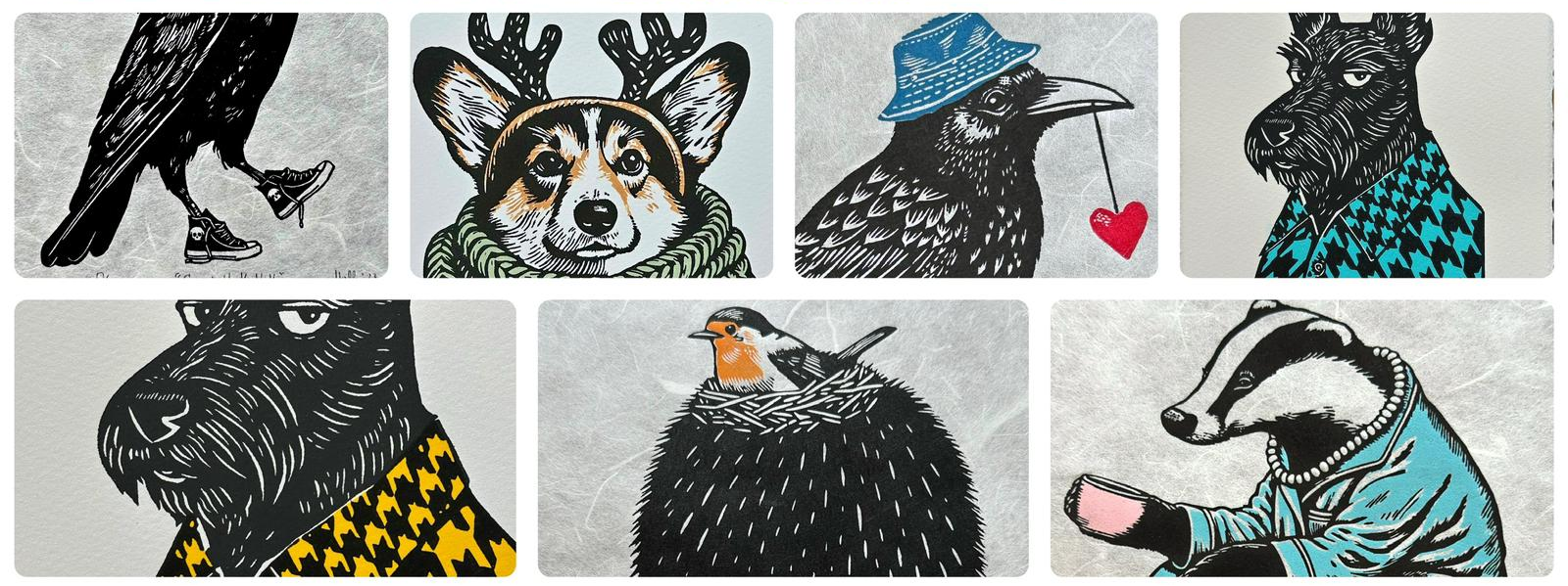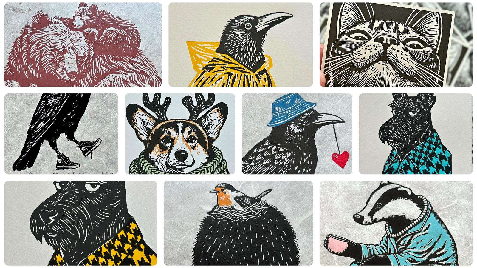 This is my second linocut from Hally & Christy Prints. Who can resist a raven in a red bobble woolly hat with a robin peaking out from the chunky yellow scarf! Delivery was super quick and the print was packed carefully with a letterpress gingerbread man thank you note. wonderful.