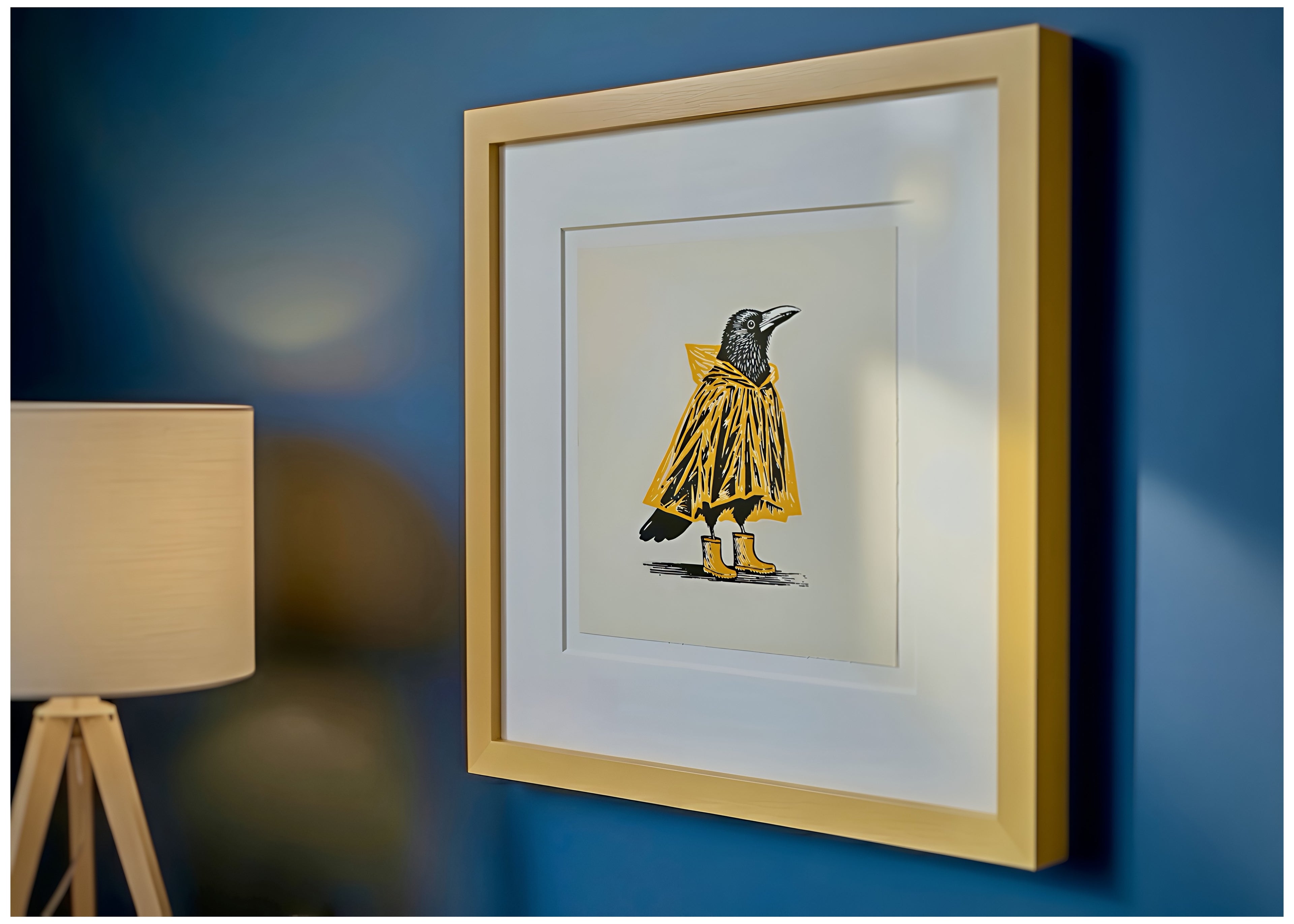 Love my print! My crow donning a yellow slicker has so much charm. I appreciate the packaging and safe arrival.