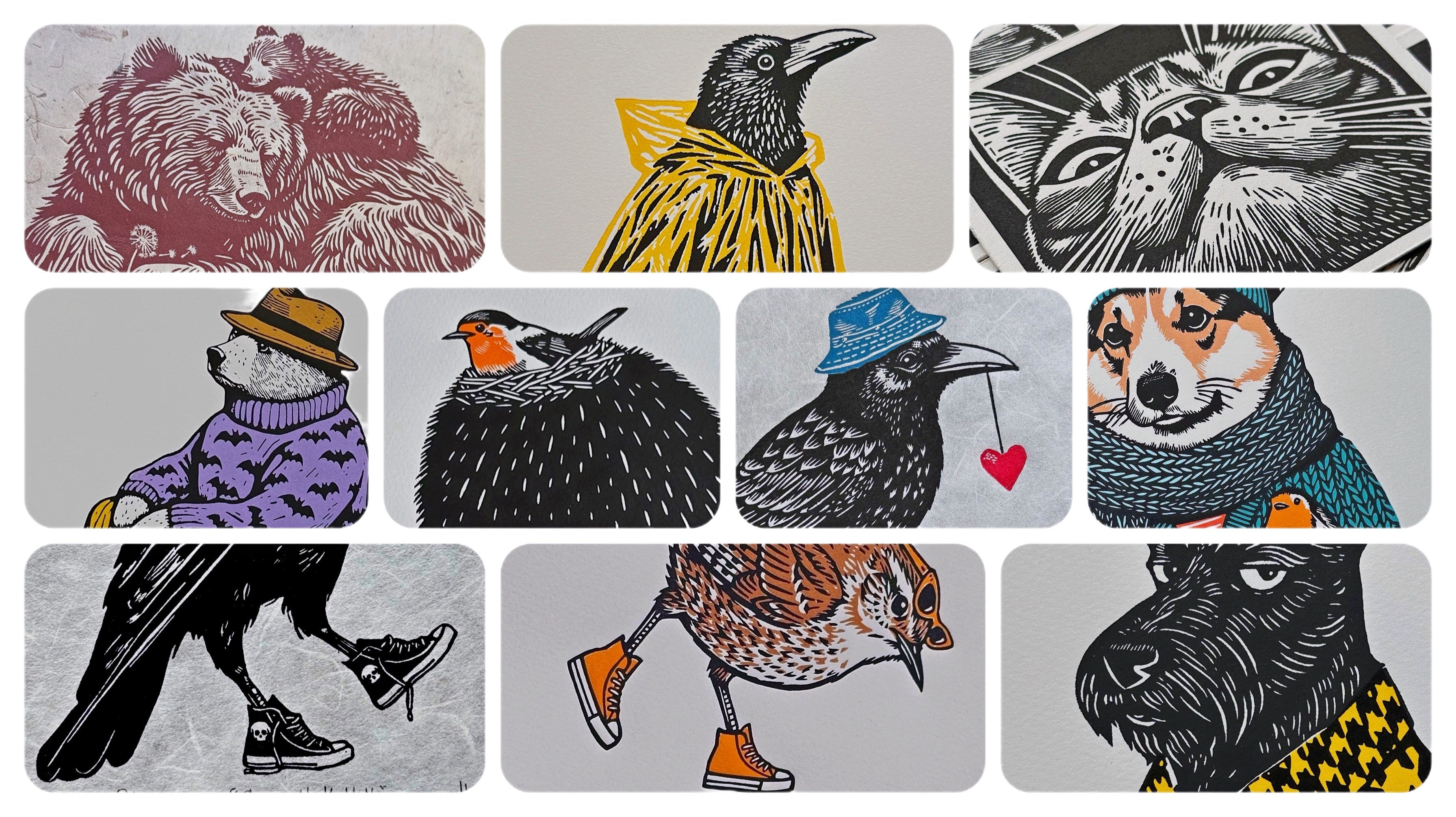 Crow’s Kooky Kicks - Original Handmade Linocut Print