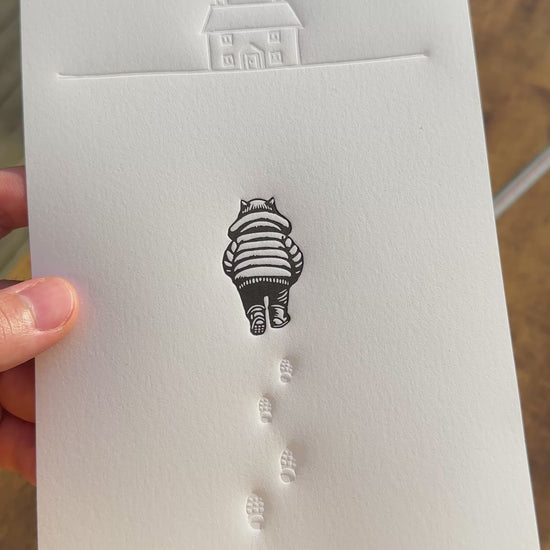 Traipsing Through the Snow - Original Handmade Linocut Print of a Cat
